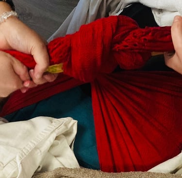 J'utilise également les écharpes Rebozo pour vous offrir des bercements doux du corps (tête, épaules, bassin, jambes, pieds).