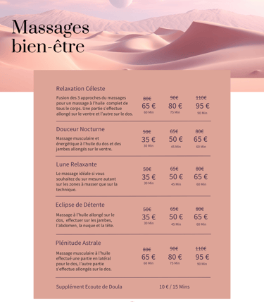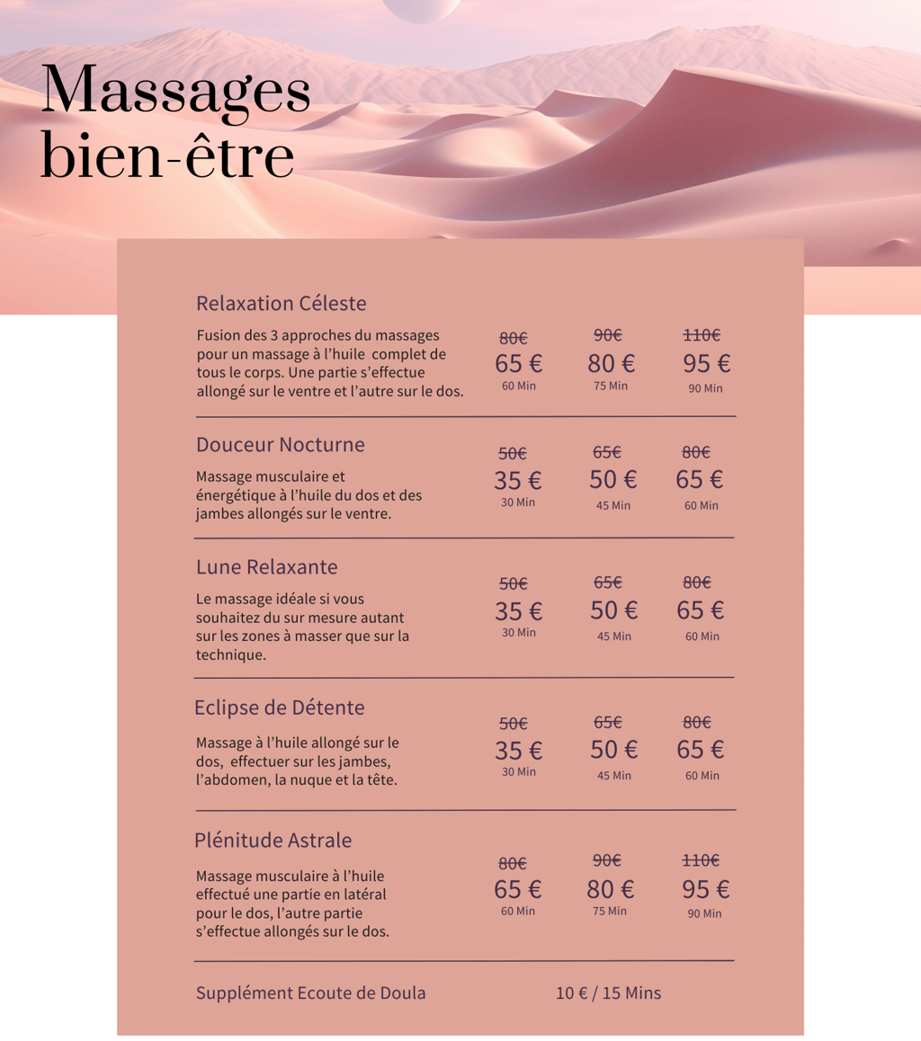 Tu souhaites plus de détails sur un ou plusieurs des massages ?